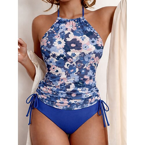Per donna Costumi da bagno Tankini Due pezzi Birichino Costume da bagno Coulisse Vacanza Abbigliamento da Spiaggia Floreale Grafico All'americana Senza Maniche Costumi da bagno