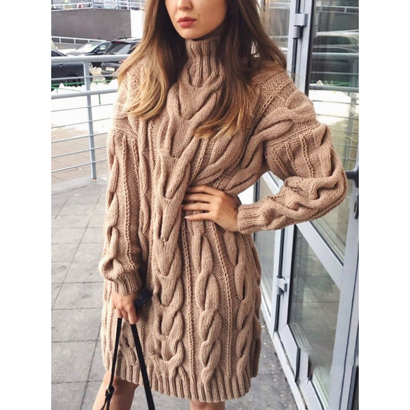 Women's Sweater Sweater Dress Casual Soft Pure Color Cable Turtleneck Knitted Long Sleeve Long Tops Knit Outdoor Daily Weekend Black Green Fall Winter