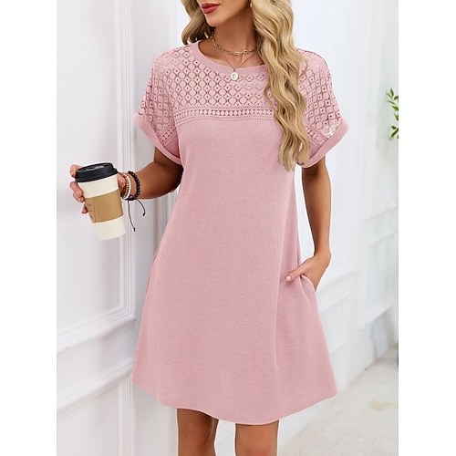Per donna Mini Abito Vestito T-Shirt Abito Estivo Casual Quotidiano Vestibilità comoda Semplice Manica Corta Girocollo Blu Bianco Rosa Rosso Estate