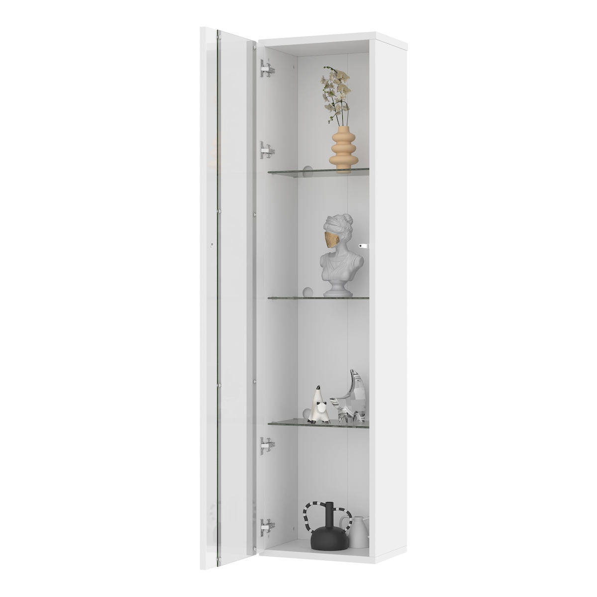 Vitrine GOODPRODUCT "Ribe,180cm hoch,5 Fächer,2 Glasböden variabel einsetzbar", weiss (weiß, eiche), B:50cm H:180cm T:35cm, Holz teilmassiv, Schränke, Vitrine, Oberplatte Eiche massiv,dunkles Glas, schwarze Metall Griffe weiß, eiche weiss/eiche, B/H/T: 50