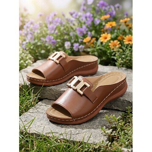 sandali da donna con fiori marroni e suola ammortizzata per casa, giardino, relax e gite informali del fine settimana