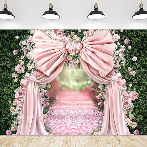 arazzo di San Valentino, stampa piatta 2D, fiocco gigante progettazione di percorsi floreali, sfondo perfetto per decorazioni romantiche per feste e un'atmosfera accogliente per le feste