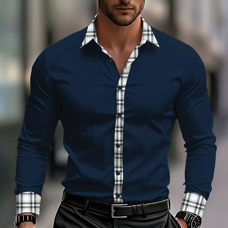 Men's Geometric Grid / Plaid Shirt Button Up Shirt Casual Dress Shirt Long Sleeve Fashion Casual Outdoor Dailywear Spring Fall Turndown 3D Print Collared Shirts Blue Black White Wine Dark Blue