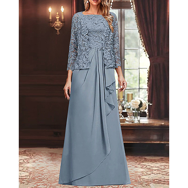 3 Piece Ankle Length Mother of the Bride Dress 3/4 Length Sleeve Scoop Neck Party Sparkle Shine Wedding Guest Wedding Party Family Gathering Chiffon Lace with Sequin Solid Color