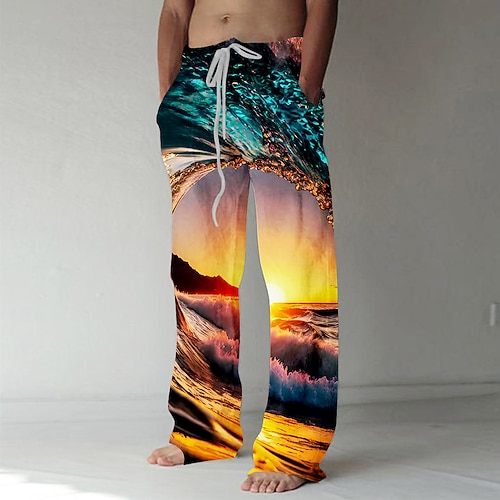 Per uomo Pantaloni Pantaloni Larghi Pantaloni casual Coulisse elastica in vita Pantaloni tipo lino con tasche Illusione ottica Paesaggio Tramonto Lunghezza intera All'aperto Vacanza Hawaiano Nero