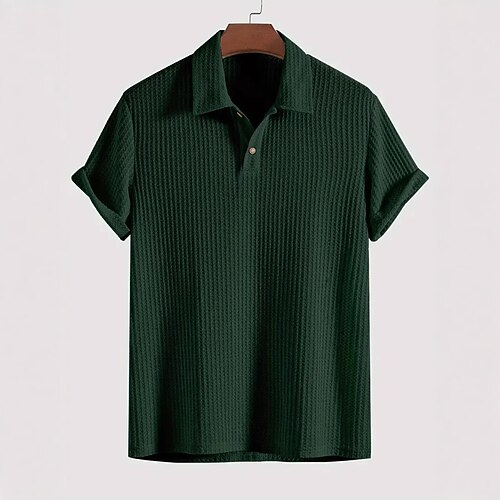 Per uomo Maglia da golf Polo a Maglia Waffle Casuale Affari Classico Manica Corta Moda Moderno Tinta unica Bottoni Estate Primavera Vestibilità comoda Nero Giallo Vino Blu marino Verde Cachi Maglia