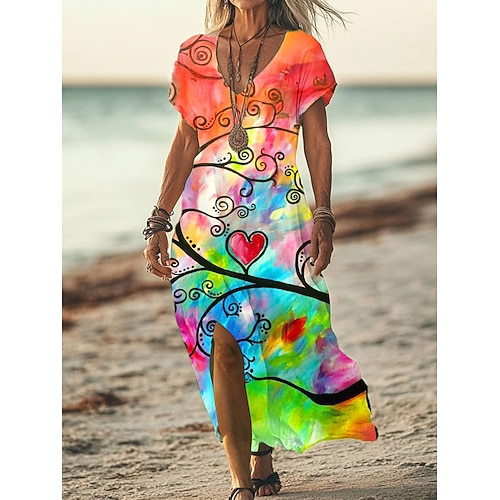 Per donna Abito maxi Vestito Estivo Vestito T-Shirt Abito a trapezio Vacanza Casual Spiaggia Uscire Vestibilità comoda Ombre Cuore Grafico Manica Corta Scollo a V Giallo Rosa Arancione Estate