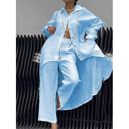Per donna Set di Pantaloni Bolero Top Manica Lunga Colletto a Camicia Semplice Moda Streetwear All'aperto Vacanza Ferie Nero Bianco Blu marino Estate Vestibilità comoda