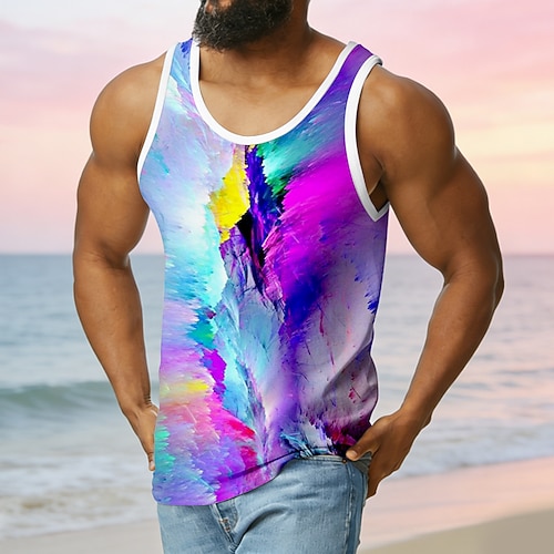 canotta da uomo, canottiera intima, maglietta senza maniche, scollo a U, estiva, astratta, colorata, schizzi, grafica, psichedelica, stampa integrale, vacanza, spiaggia, moda, classica, comoda,