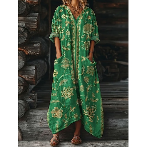 Per donna Abito lungo maxi Vestito Casual Vestito a ruota Abito Estivo Abito Boho Bohemien Moda Casual All'aperto Vacanza Quotidiano Vestibilità comoda Floreale Paisley Tribale Manica Corta Scollo a V