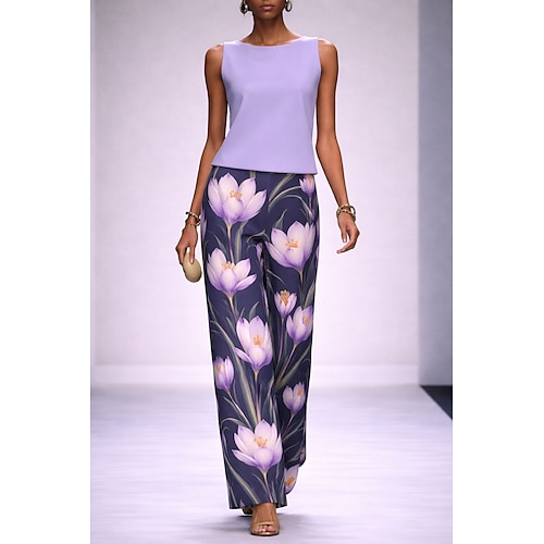 Per donna Set di Pantaloni Senza Maniche Girocollo Floreale Grafico Elegante Vacanza Quotidiano Casuale Quotidiano Formale Blu Viola Verde Estate Vestibilità regolare Vestibilità comoda
