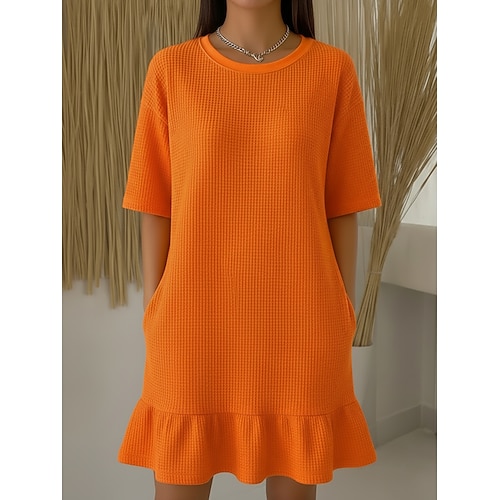 Per donna Abito al ginocchio Abiti Peplo Moda Classico Quotidiano All'aperto Vestibilità comoda Semplice Mezza Manica Girocollo Giallo Chiaro Rosa chiaro Bianco Verde chiaro Estate Primavera