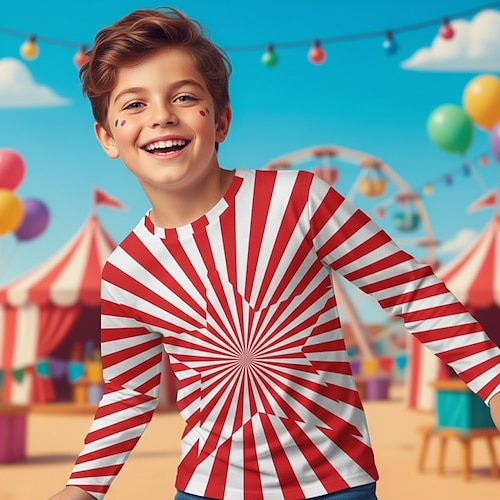 Costume di Carnevale 2026 Ragazzi 3D Grafico Geometrico Illusione ottica Maglietta Manica Lunga Stampa 3D Primavera Autunno Sport Moda Streetwear Bambini 4-12 Anni Girocollo Casuale Quotidiano