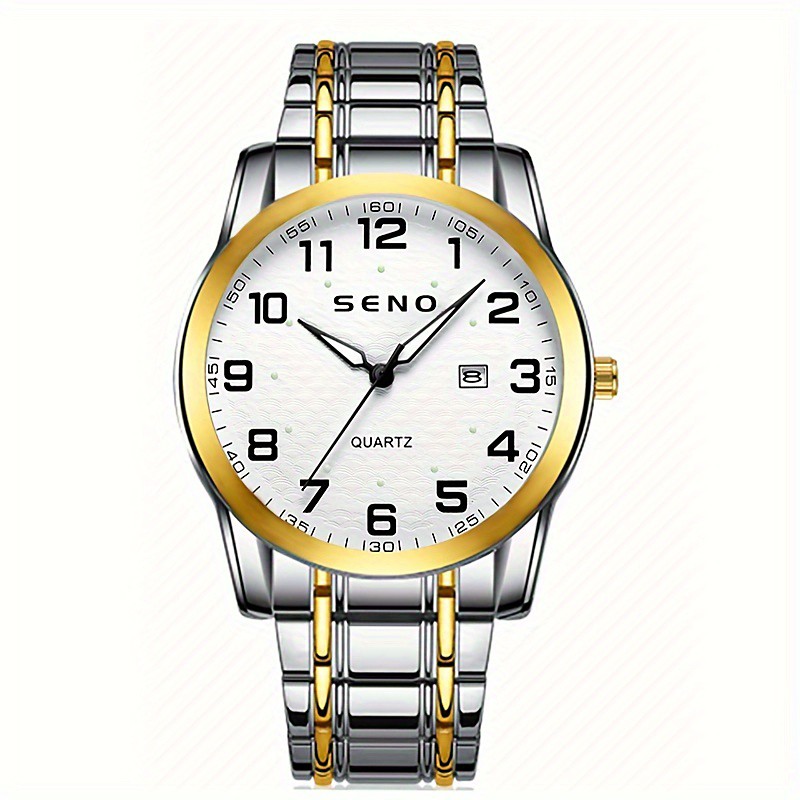 A New Seno Brand Men'S Business Steel Band Quartz Watch With Ipx7 Water Resistance Luminous Calendar Fashionable And Trendy Life Travel Casual Simple And Sporty Wristwatch An Ideal Choice For Fe