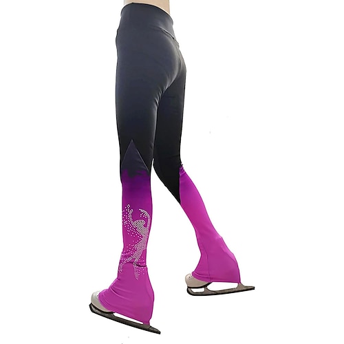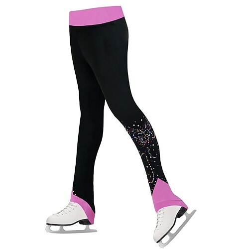 pantaloni da pattinaggio artistico da donna e da ragazza, pantaloni da pattinaggio sul ghiaccio, neri, elastici, abbigliamento da pattinaggio per gare di allenamento, termici, caldi, con