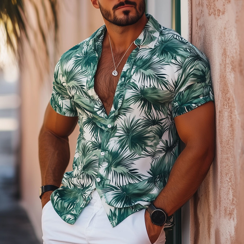 St. Patrick Men's Shamrock Gold Coin Prom Shirt Long Sleeve Fashion Casual Party Summer Spring Stand Collar Pocket Green