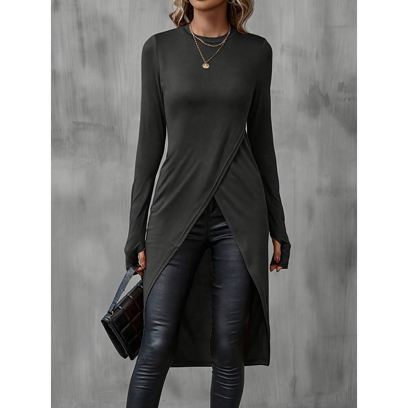 Women's T Shirt Plain Fashion Modern Casual Long Sleeve Crew Neck Regular Tops Daily Weekend Buttons Pink Blue Khaki Summer Spring