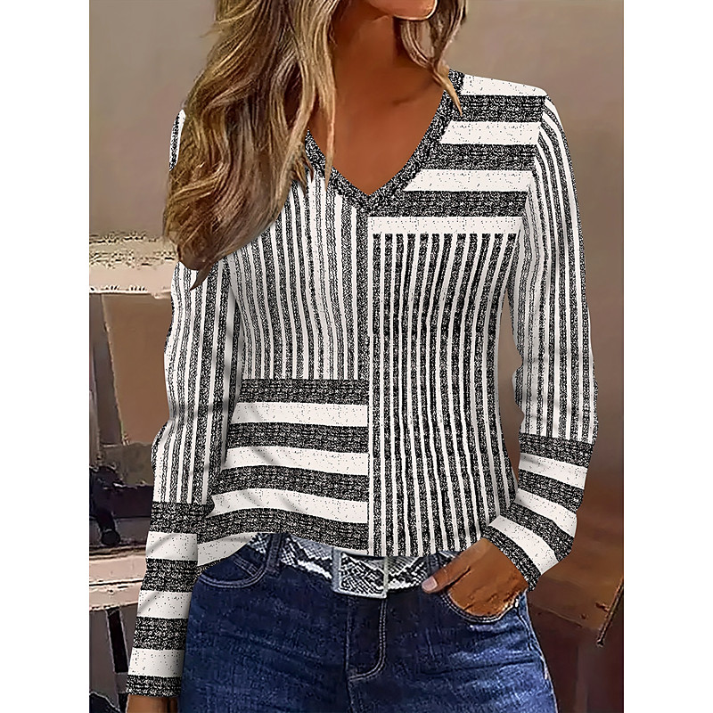 Women's T Shirt Ombre Graphic Abstract Vintage Stylish Classic Long Sleeve V Neck Regular Tops Daily Print Pink Spring Fall Winter