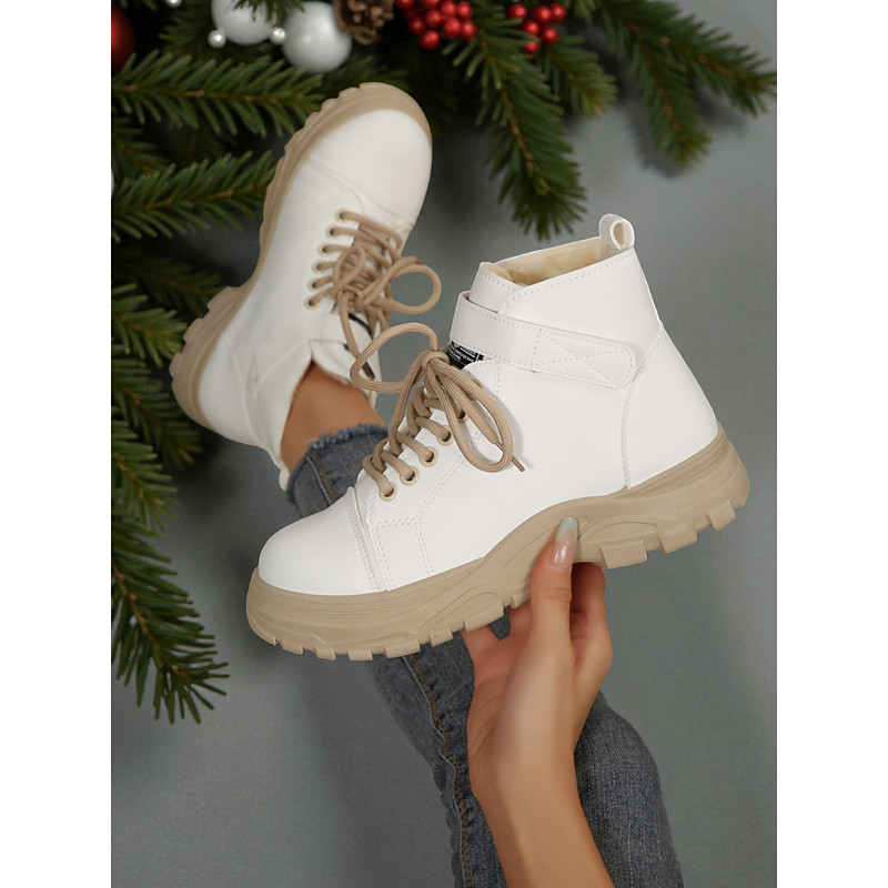 Women's White Lace-Up Ankle Boots – Chunky Sole Winter Boots, Stylish for Christmas, Streetwear and Casual Outings