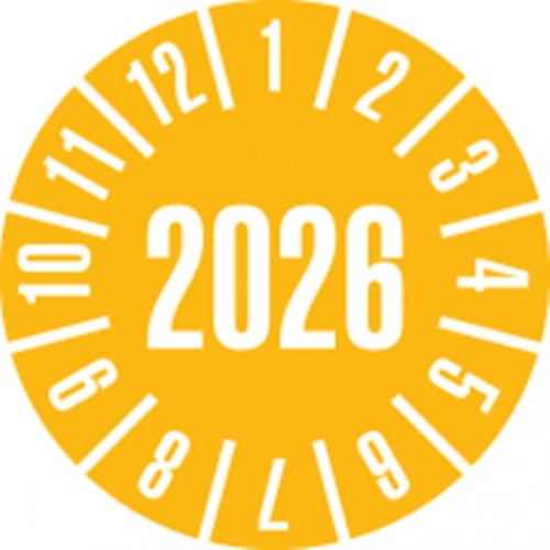Dreifke® Prüfplakette 2026, gelb, Schachbrettfolie, selbstklebend, Ø 30mm, 18 Stk.