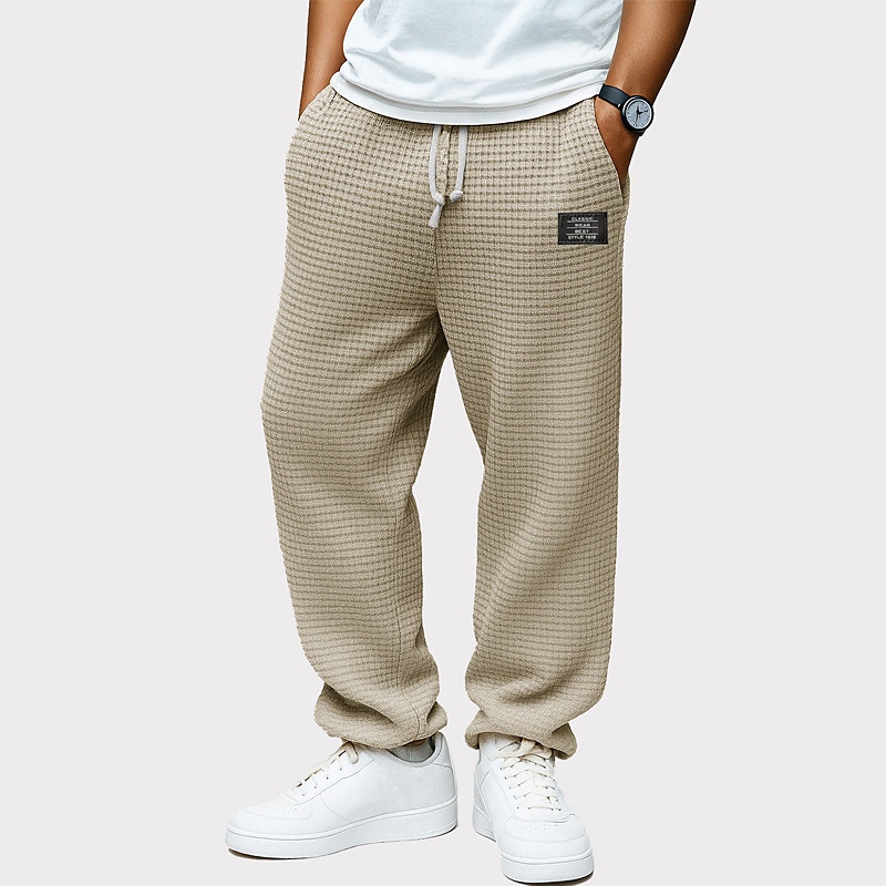 Men's Waffle Sweatpants Trousers Baggy Pants Casual Pants Drawstring Straight Leg Solid Color Comfort Full Length Outdoor Casual Daily Fashion Retro Vintage Loose Fit Black White Stretchy
