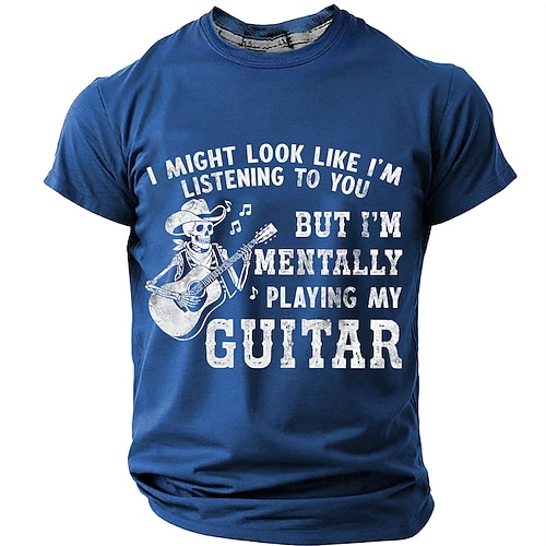 Herren Gitarre Lustiger Slang T Shirt Kurzarm T-Shirt 3D-Druck Rundhalsausschnitt Hemd Mode Täglich Täglich Straße Blau Schwarz Rote Sommer Frühling Bekleidung S M L XL XXL XXXL