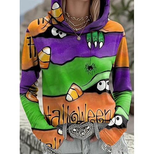 Damen Pullover Hoodie Sweatshirt Monster Grafik Schädel Lässig Druck Lange Ärmel Kapuzen Street Dailywear Lässig Kordelzug Patchwork Druck Rot Lila Orange Grün Hellgrau Herbst Winter