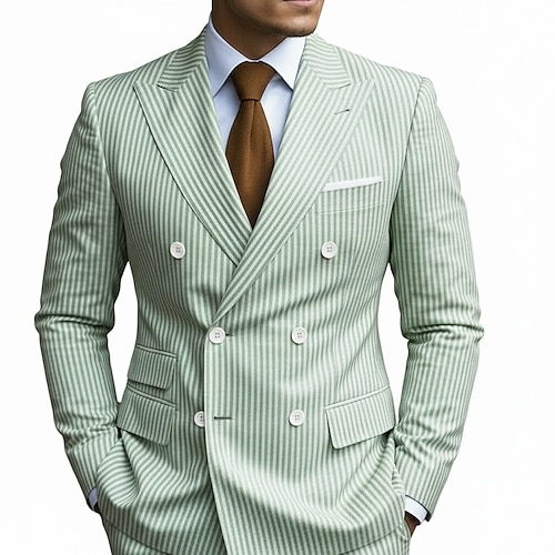 Herren Seersucker-Anzüge Strandhochzeit Frühlingshochzeit Rosa Rote Frühling Sommer Anzug Steigendes Revers Geschäftlich Leicht Gestreift Figurbetonter Schnitt 2-teilig Doppeltknopfjacke mit sechs