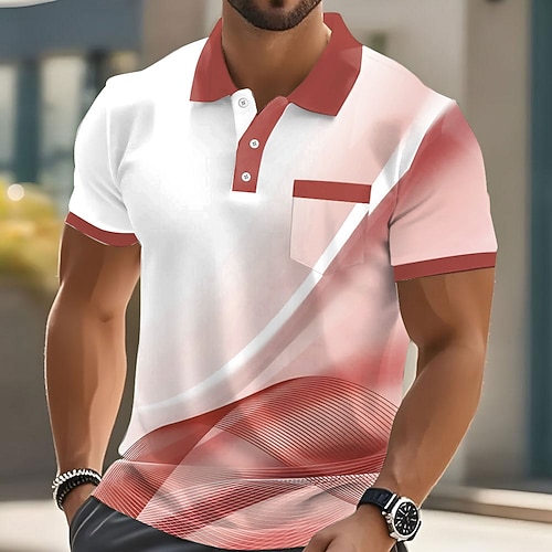 Herren Geometrisch Linie Polo Kurzarm Polo-Shirts Hemden mit Kragen Business-Casual Outdoor Athleisure Alltagskleidung Tasche 3D-Druck Knöpfe Sommer Blau Meerblau Rote