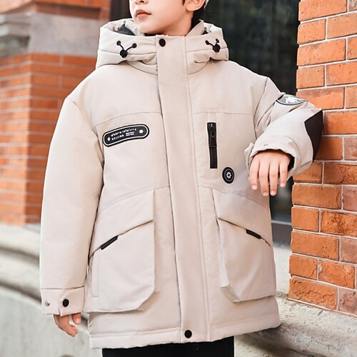 Kinder Unisex Daunenjacke Outdoorjacke Daunenjacke Oberbekleidung Einfarbig Langarm warm halten Winddicht Mantel Outdoor Täglich Basic Schwarz Rote Grün Herbst Winter Ab 4 Jahren