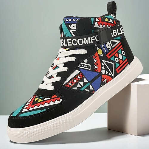 sneakers alte colorate da uomo: design grafico alla moda, comode e audaci, ideali per l'abbigliamento casual e lo street style