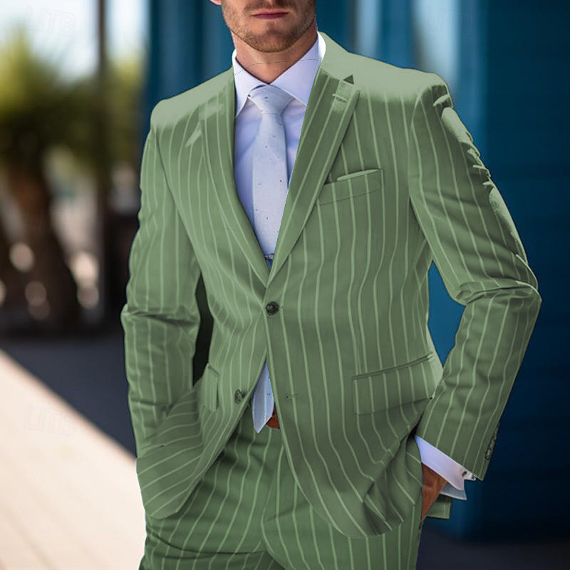 Men's BlazerDress Pants Blazer Suits Business Cocktail Party Wedding Party 2 Piece Fashion Casual Spring Fall Cotton Blend Stripe Pocket Buttons Comfortable Single Breasted Blazer Pink Purple Orange