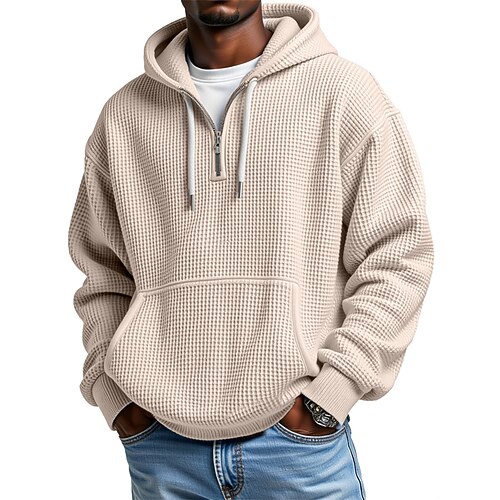 Per uomo Felpa con cappuccio Felpa con cappuccio e cerniera a un quarto Nero Rosso Blu marino Blu Reale Cachi Con cappuccio Liscio Cerniera Tasche Sportivo Giornaliero Per eventi Streetwear