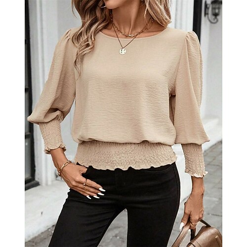 Per donna Maglietta Tinta unica Elegante Vintage Moda Manica Lunga Girocollo Top Regolari Quotidiano Uscire Weekend Volant Patchwork Nero Bianco Rosa Blu Reale Verde Primavera Autunno