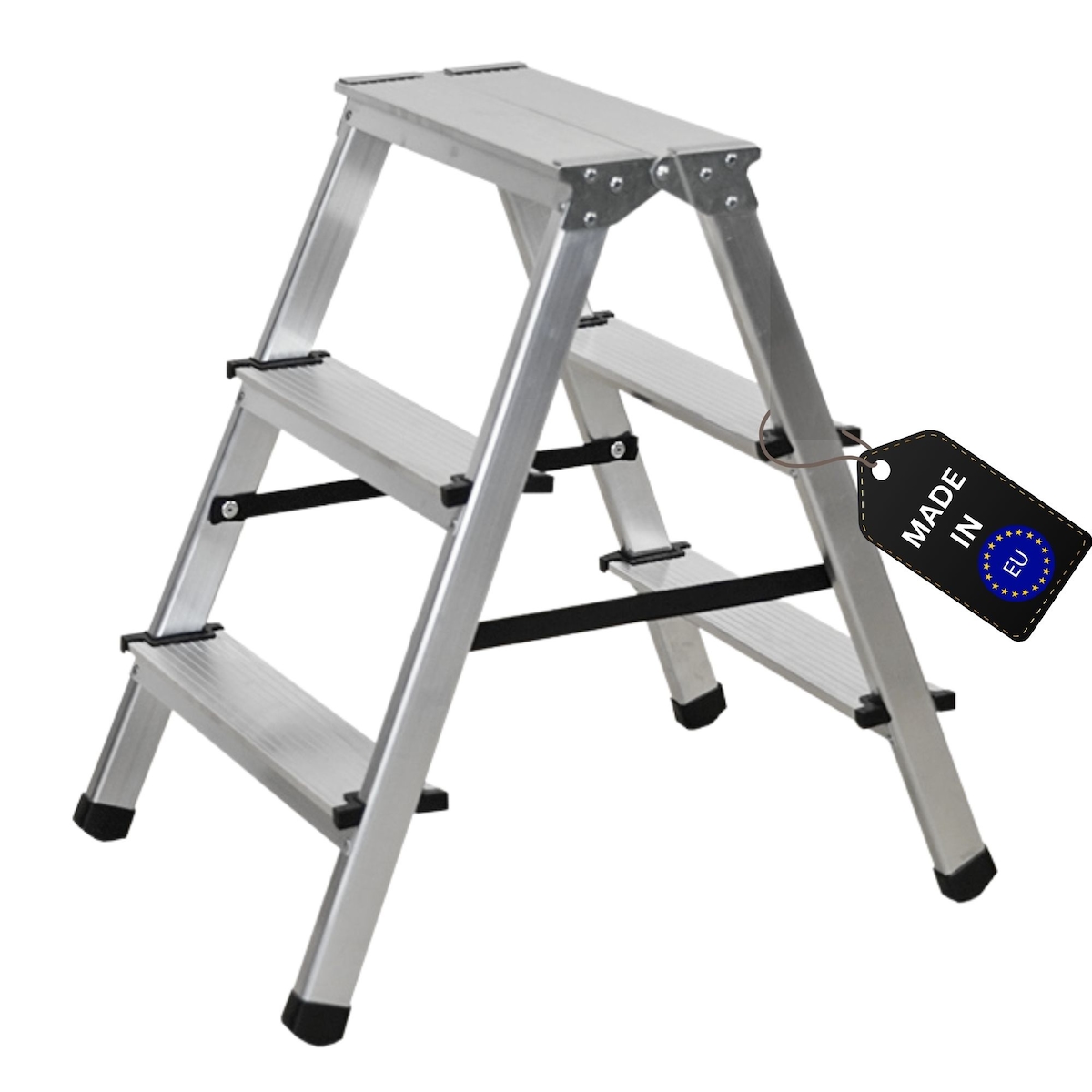 PROREGAL Stufenstehleiter ATLAS | beidseitig begehbar | 2x3 Stufen | Arbeitshöhe 2,20m | Traglast 125kg