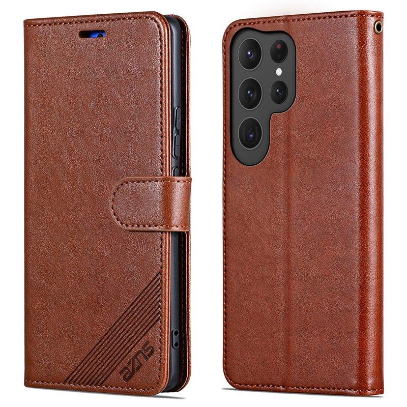 AZNS Samsung Galaxy S25 Ultra Plånboksfodral Anti-Scratch Konstläder - Brun