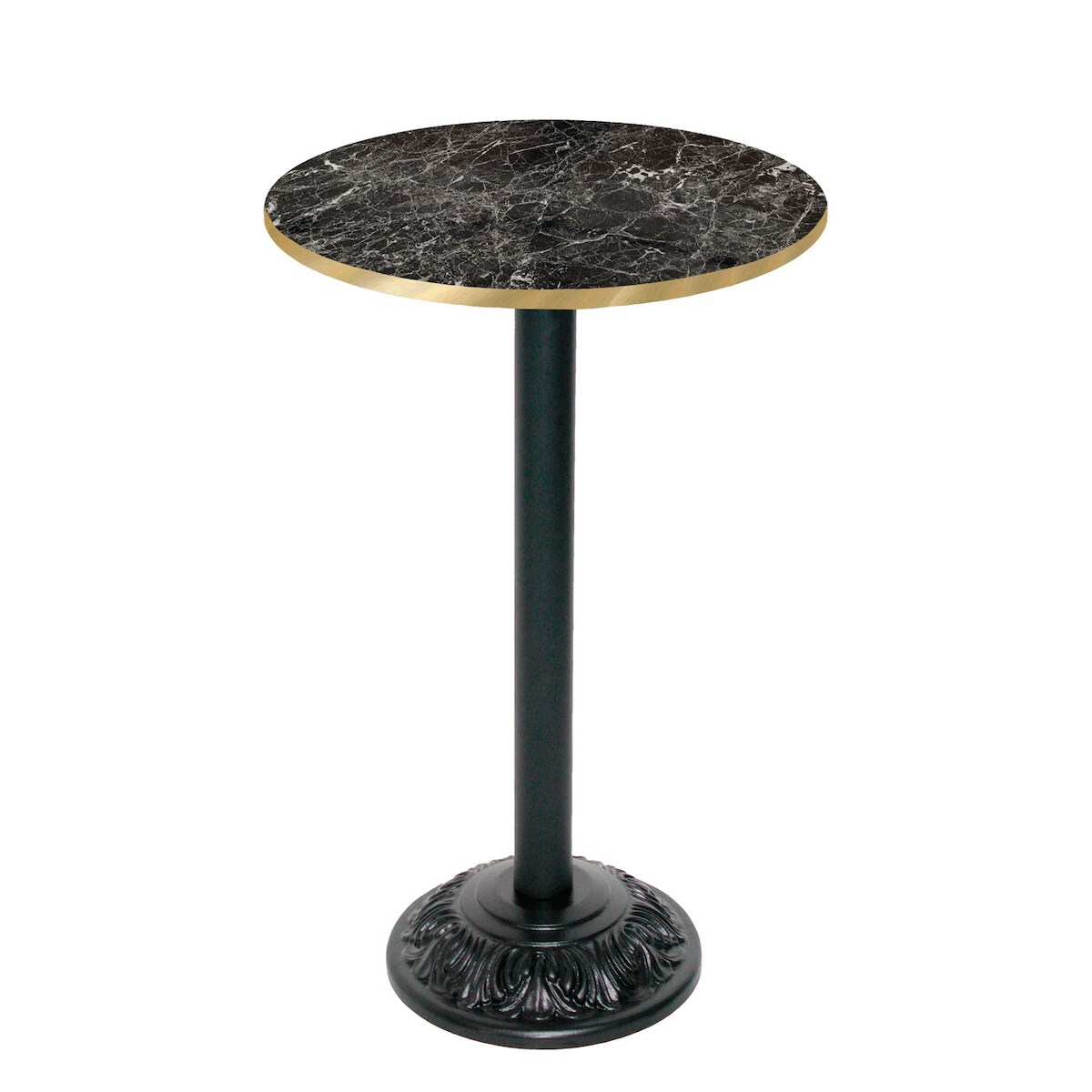 Restootab Stehtisch Bistrot-Stil Ø60cm - Modell Marmor Glänzend mit messingfarbenen Kanten
