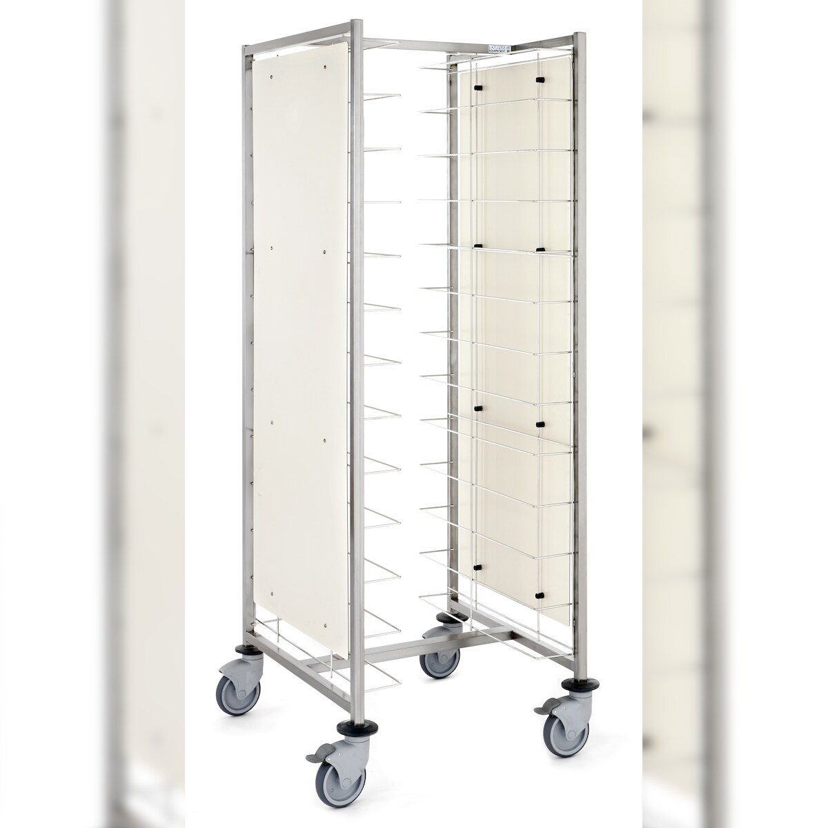 Tournus Tablettabräumwagen / Cafeteria Abräumwagen mit 12 Einschüben (längs) für Tabletts Breite 480 - 560 mm. Mit Seitenverkleidung.