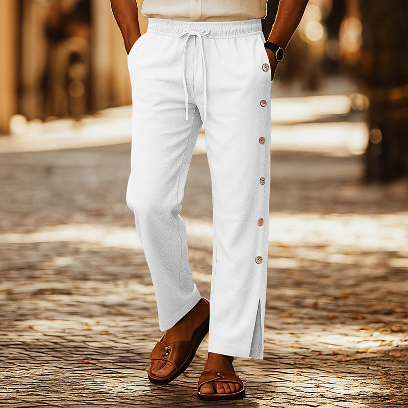 Men's Linen Pants Trousers Summer Pants Baggy Pants Beach Pants Drawstring Elastic Waist Buttons Plain Comfort Breathable Full Length Home Casual Daily Vacation Fashion Black White Micro-elastic