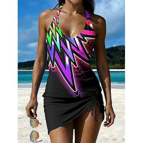 Per donna Costumi da bagno Tankini Gonna Costume da bagno Coulisse Elegante Vacanza Grafico Geometrico Collo a U Senza Maniche Costumi da bagno