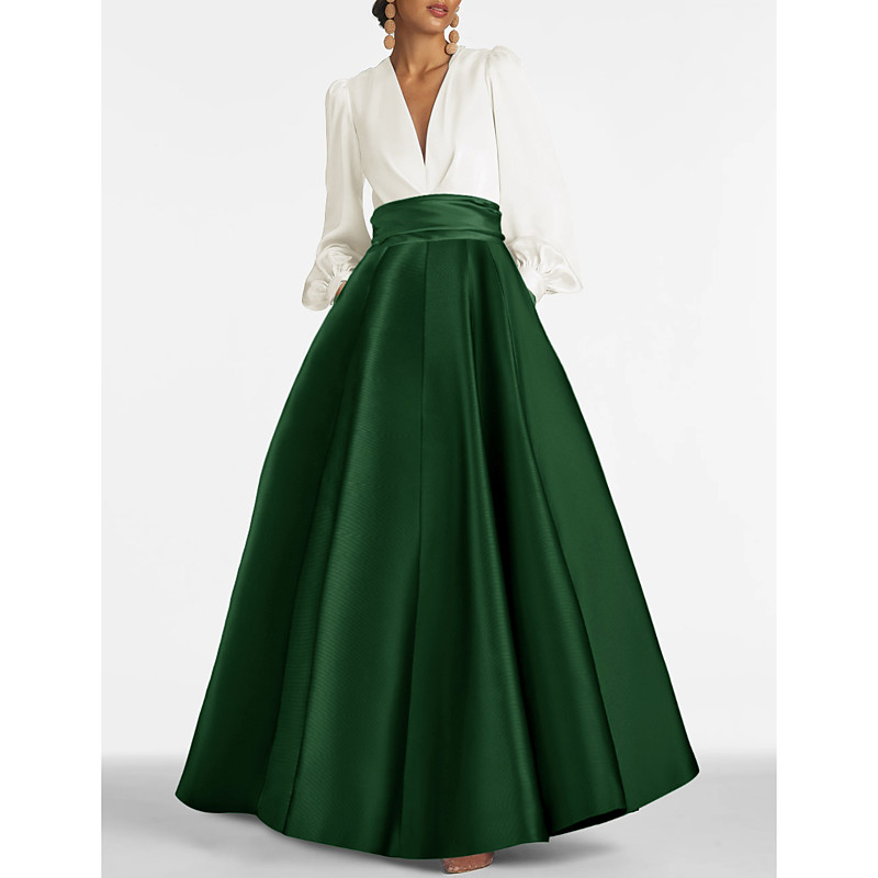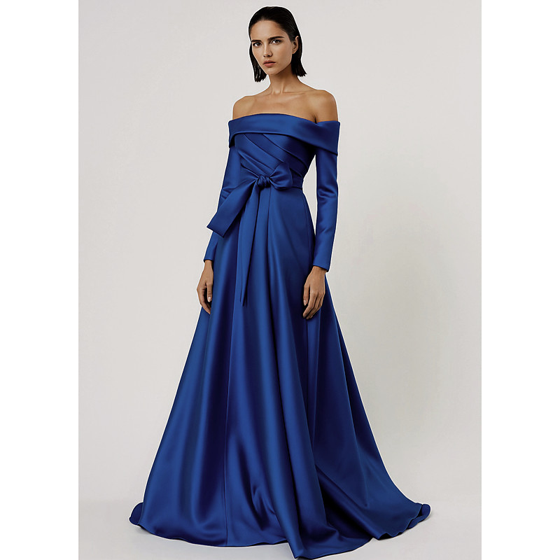 A-Line Floor Length Evening Gown Ball Gown Formal Dress Elegant Silky Long Sleeve Off Shoulder Wedding Formal Pocket Satin with Bow(s)