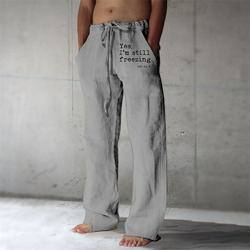 Men's Graphic Letter Linen Pants Pants Trousers Mid Waist Casual Daily Wear Vacation Going out Spring Fall Black White Green