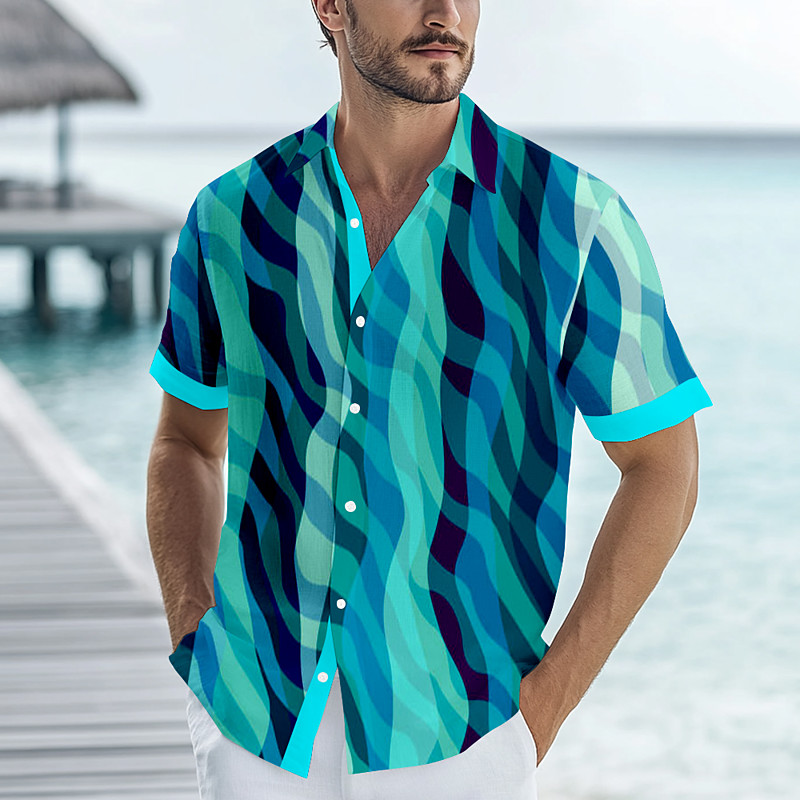 Men's Leaf Aloha Shirt Short Sleeve Hawaiian Vacation Summer Spring Turndown Button Up White Blue Green