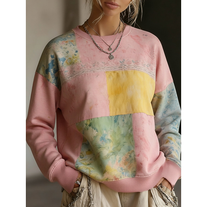 Women's Blouse Floral Stylish Casual Long Sleeve Crew Neck Regular Tops Daily Patchwork Sage Green Black Brown Apricot Spring Fall Winter