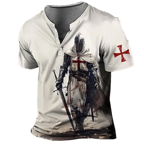 Herren Tempelritter T Shirt Henley Shirt Kurzarm 3D-Druck Designer Retro Vintage Casual Täglich Sommer Weiß 1 Weiß 2 Henley Henley T-Shirt