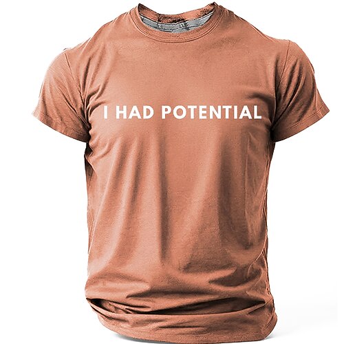 Maglietta da uomo con grafica I had potential funny sarcastic quote minimal meme, vestibilità regolare, taglie S, M, L, XL, XXL, XXXL.