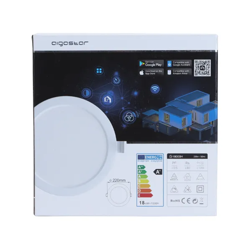 Aigostar Spot encastré slim LED intelligent Wi‑Fi 18 W, CCT 3000 K à 6500 K, Φ : 220 mm, 1380 lm