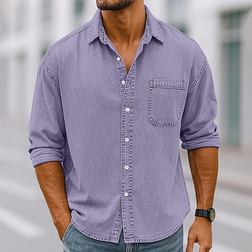 Herren Hemd Freizeithemd Vintage-Shirt Knopfhemd Schwarz Hellgrün Wein Marineblau Blau Langarm Einfach Revers Lässig Ausgehen Tasche Bekleidung Vintage Mode Retro Vintage