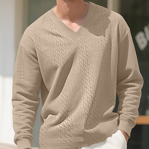 Herren T Shirt T-Shirt Langarmshirt Langarm V Ausschnitt Frühling Herbst Einfarbig Mode Streetwear Lässig Jacquard Outdoor Urlaub Straße Schwarz Weiß Marineblau Top T-Shirt für Herren