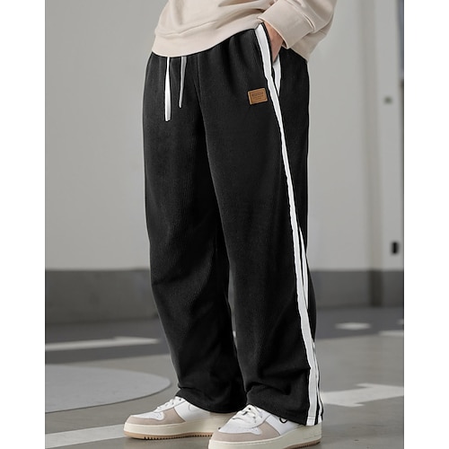 Herren Jogginghose Hose Gerade geschnittene Sweatpants Kordelzug Tasche Elastischer Bund Farbblock Komfort Sport im Freien Täglich Mode Lässig Schwarz Rote Mikroelastisch
